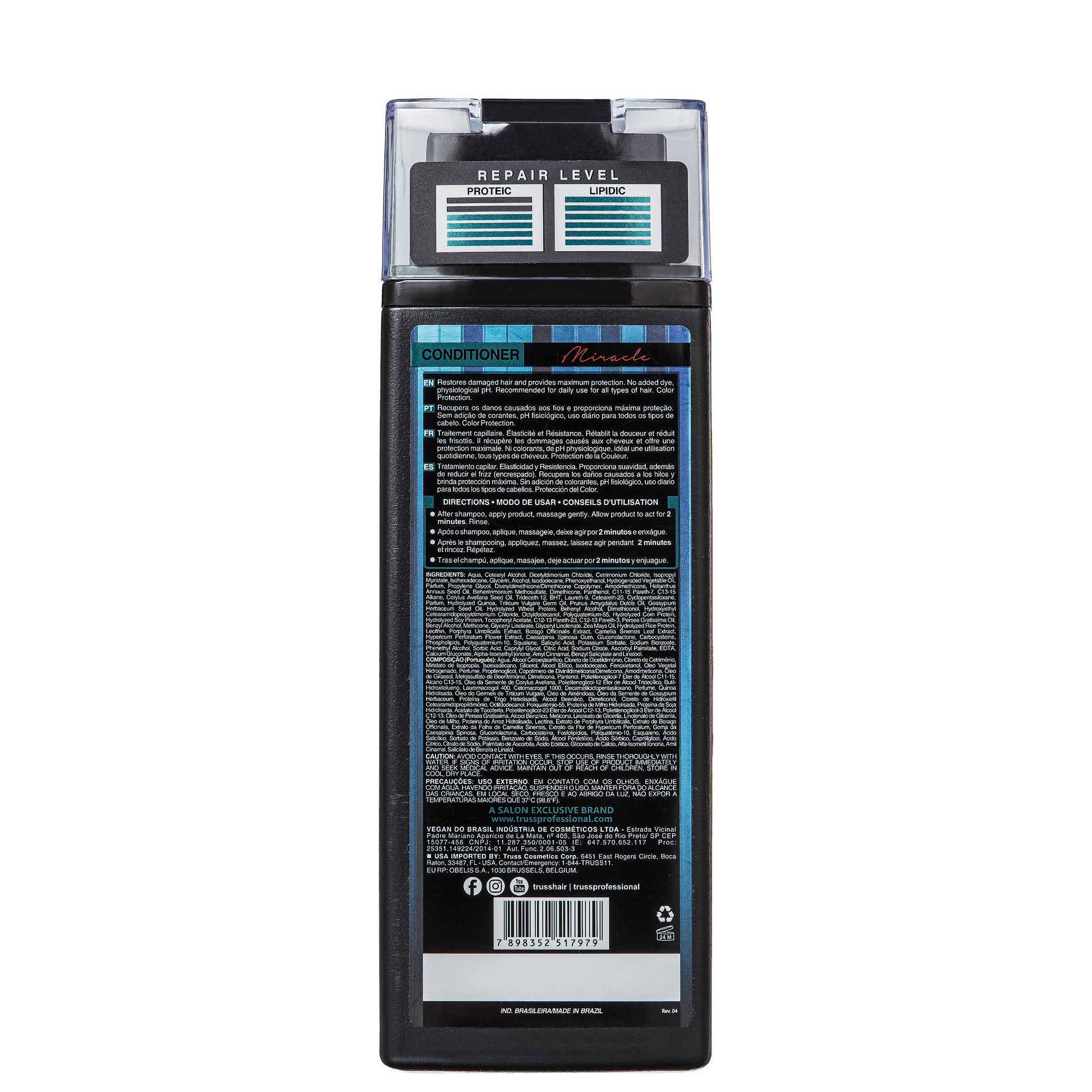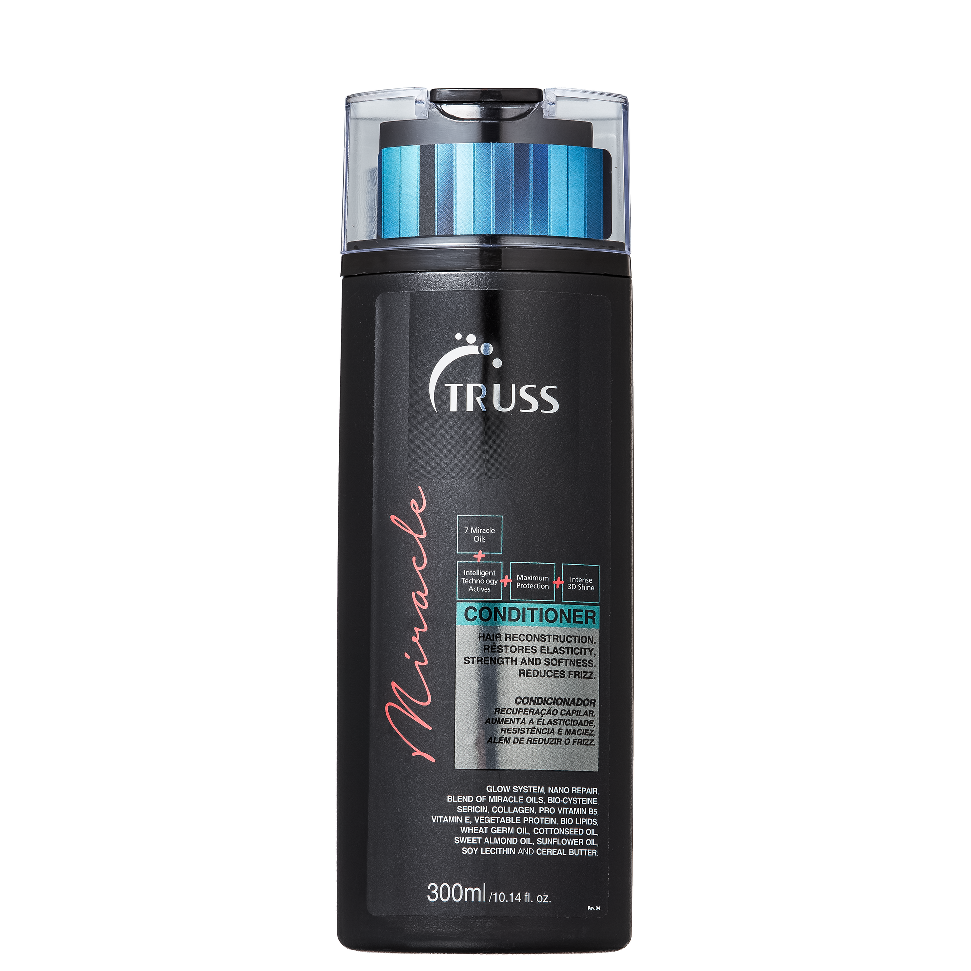 O Condicionador Truss Miracle desembaraça, nutre e proporciona um toque sedoso ao cabelo, garantindo fios mais saudáveis, brilhantes e livres de frizz.